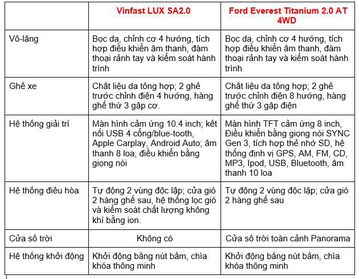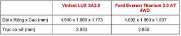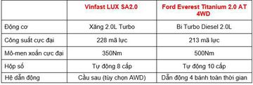 1.5 tỷ mua Vinfast LUX SA2.0 hay Ford Everest Titanium 2.0 AT 4WD?
