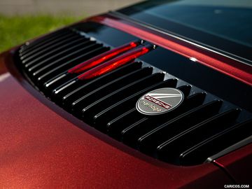 Điểm đáng chú ý trên mẫu xe Porsche 911 Targa 4S Heritage Design Edition là màu sơn ngoại thất quyến rũ Cherry Metallic kết hợp với logo vàng. Màu đỏ sẫm là màu ngoại thất rất phổ biến những năm 50, điển hình là các màu sắc của Porsche 356 cũng mang màu đỏ như Pascha Red, Ruby Red và Polyantha Red.