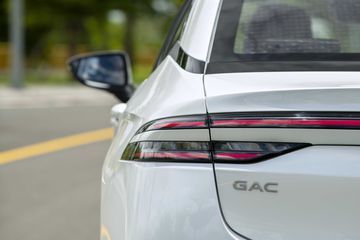 Di chuyển ra sau, phần đuôi xe AION ES có sự trau chuốt gọn gàng, bố cục các chi tiết ở khu vực này theo lối tinh giản và được sắp xếp theo phương ngang. Điều này thể hiện rõ nhất qua chi tiết gờ dập nổi ở cản sau, thiết kế nẹp biển số hay cụm đèn hậu LED.
