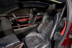 Bên trong nội thất bản concept của Mazda 3 2019 là bảng điều khiển trung tâm mang phong cách thiết kế tối giản dạng phân tầng, nổi bật bởi các đường viền mạ chrome sáng bóng, bảng đồng hồ thể thao và màn hình trung tâm lớn, vô lăng 3 chấu.