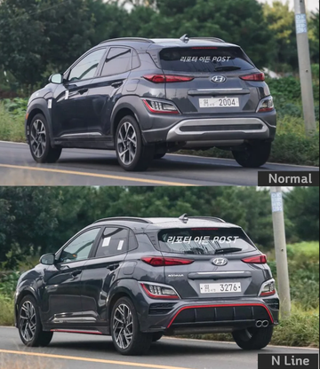 Đây là phiên bản N Line đầu tiên của Hyundai Kona, xe tạo nét khác biệt với bản thường bởi cản trước mới, la-zăng hợp kim 18 inch, cản sau có thiết kế hầm hố hơn với bộ khuếch tán khí động học lớn.
