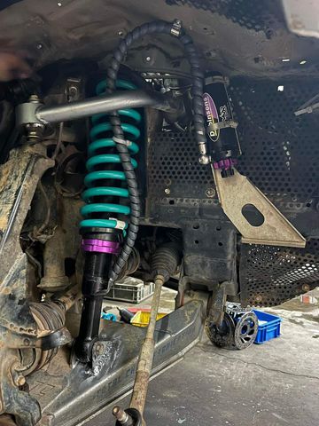 Đặc biệt độ nhún sẽ biến thiên theo tải trọng đè giúp thân xe ổn định khiến tay lái chính xác hơn. Chiếc xe đua Toyota Hilux của Aozoom Racing cũng được gắn trọn hệ thống phuộc và bumpstop của Dobinsons, với 8 cây phuộc Dobinsons MRA (Monotube Remote Reservoir 3-Way Adjustable) có thể chỉnh 10 chế độ high speed compression, 20 chế độ low speed compression, 15 chế độ rebound