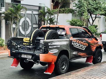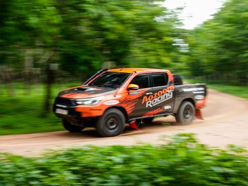 Đội đua Aozoom Racing năm nay vẫn sẽ thi đấu bằng mẫu bán tải Toyota Hilux đã tham gia mùa giải AXCR 2023. Tuy nhiên xe đua của đội năm nay được thay đổi nâng cấp nhiều hạng mục cần thiết. Với sự tài trợ hết mình từ thương hiệu giảm xóc Dobinsons, toàn bộ phần gầm sau được gắn dàn nhíp Parabolic - dòng nhíp sau bán tải có công nghệ mới nhất trong việc chịu tải, với độ dày khác nhau dọc lá nhíp. Giúp việc đàn hồi gầm mượt, ổn định nhưng nhẹ, cứng và bền hơn.