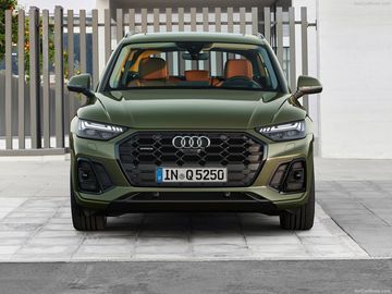 Mẫu xe Audi Q5 mới mang trên mình một ngôn ngữ thiết kế mạnh mẽ và thể thao. Phần trước của mẫu xe Q5 mới tương đối thấp và nổi bật với các đường nét thiết kế nằm ngang; khung tản nhiệt đơn cũng có thiết kế nằm ngang tương tự. Khung viền lưới tản nhiệt mạnh mẽ bằng nhôm chạy dài đến đèn pha và làm nổi bật lưới tản nhiệt đơn.