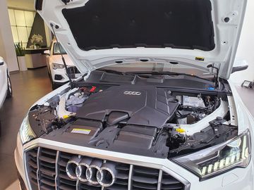 Audi Q7 55 TFSI sử dụng hộp số 8 cấp tiptronic và hệ dẫn động bốn bánh toàn thời gian quattro. Công nghệ mild hybrid kết hợp với động cơ xăng V6 TFSI được nạp bởi một monoturbo. Các thông số quan trọng: công suất 250 kW (340 mã lực), mô-men xoắn 500 Nm, tăng tốc từ 0 tới 100km/h trong 5,9 giây, vận tốc tối đa 250 km/h.