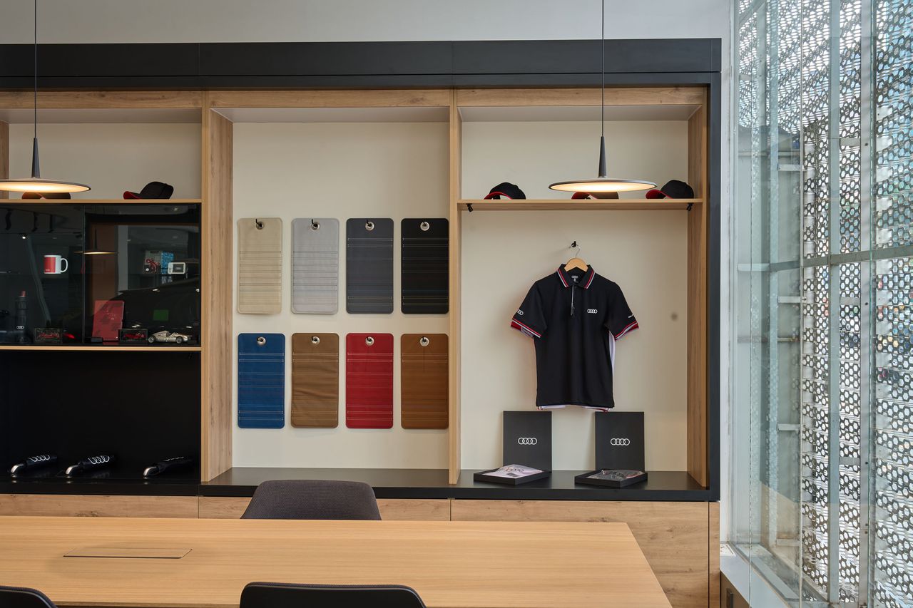 Tiếp theo là khu phụ kiện chính hãng dành cho việc khám phá và tìm hiểu chi tiết các phụ kiện chính hãng Audi, và cuối cùng là khu vực bàn giao xe – nơi khách hàng nhận chiếc xe mới theo cách cá nhân hóa và sang trọng nhất.