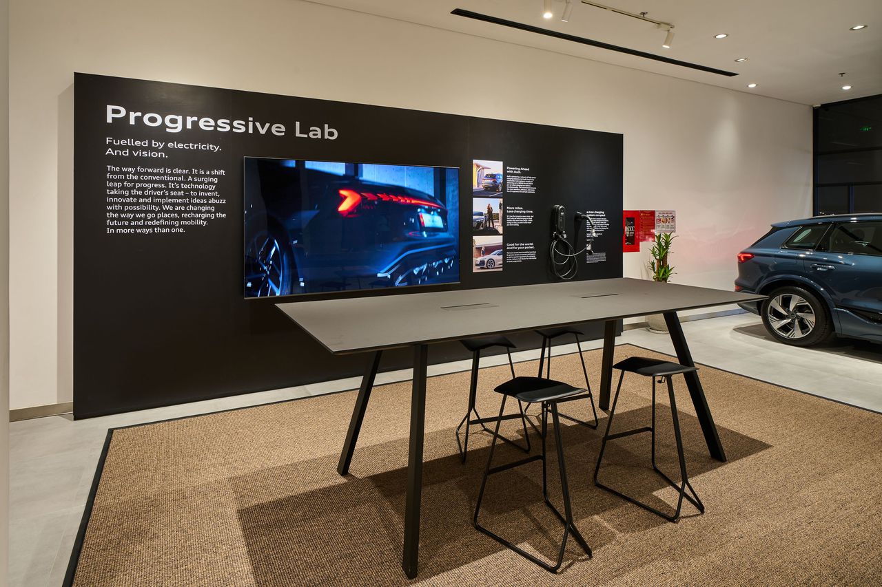 Mô hình Progressive Showroom Concept của Audi được xây dựng dựa trên cấu trúc tám mô-đun, nhằm mang đến cho mỗi khách hàng và khách tham quan một hành trình trải nghiệm được cá nhân hóa hoàn toàn ngay trong không gian showroom, từ đó tạo nên một trải nghiệm cao cấp, trọn vẹn với thương hiệu và sản phẩm Audi.