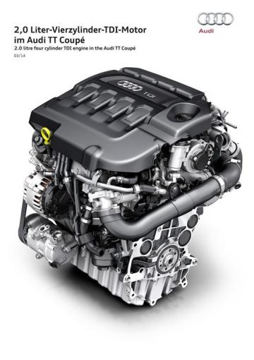 Audi TT mới sẽ bao gồm hai phiên bản Coupe và Roaster, cùng trang bị động cơ TDI sản sinh công suất cực đại 184 mã lực và mô-men xoắn cực đại 380 Nm, kết hợp cùng hộp số tự động 6 cấp ly hợp kép S-tronic và hệ dẫn động bốn bánh cho phép xe vận hành êm ái ở nhiều chế độ khác nhau.