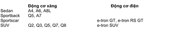 Tất cả các mẫu xe Audi trang bị động cơ xăng đều được áp dụng chiến dịch giá bán lẻ „Quà tặng liền tay, đón ngay hè đến cùng Audi“ và gói miễn phí 02 năm bảo hiểm vật chất từ PJICO, các xe đã sẵn sàng bàn giao ngay trên toàn quốc.