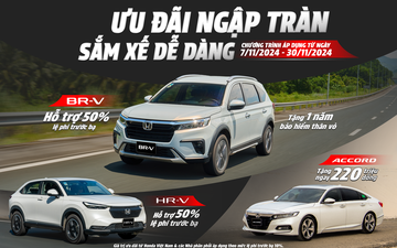 Với mong muốn mang đến cho khách hàng nhiều hơn nữa cơ hội trải nghiệm các mẫu xe ô tô Honda và tận hưởng những khoảnh khắc trọn vẹn bên gia đình, Honda Việt Nam (HVN) phối hợp cùng hệ thống Nhà Phân phối triển khai chương trình khuyến mại hấp dẫn từ ngày 07 đến hết ngày 30 tháng 11 năm 2024 cho các dòng xe: Honda BR-V, Honda HR-V, Honda Accord.Đánh giá Mazda CX-3 2024: Trang bị hiện đại, giá bán hấp dẫn nhưng vận hành chưa ấn tượng