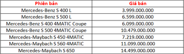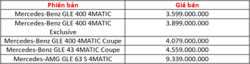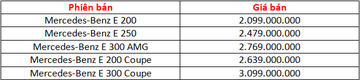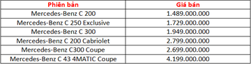 Bảng giá mới nhất của các mẫu xe Mercedes-Benz đã bao gồm thuế giá trị gia tăng 10% (VAT).