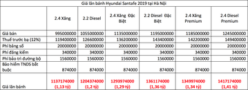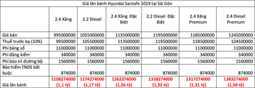 Bảng giá lăn bánh của Santafe 2019 tại Việt Nam