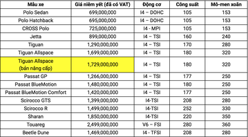 Vừa qua, Volkswagen Việt Nam đã cập nhật bảng giá các dòng xe của mình tại Việt Nam trong tháng 10/2018. Đáng chú ý nhất là mẫu xe Tiguan Allspace có thêm phiên bản mới với giá bán 1,729 tỷ đồng.