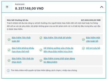 Ở gói bảo hiểm Autocare, khách hàng sẽ sở hữu toàn bộ các hạng mục sau đây: