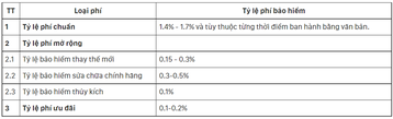 - Tỷ lệ phí bảo hiểm được xác định = Tỷ lệ phí chuẩn x Tỷ lệ phí mở rộng - Tỷ lệ phí ưu đãi.