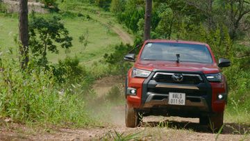 Tóm lại, nếu có điều kiện thì cứ mạnh dạn "xuống tiền" phiên bản cao nhất để trải nghiệm các tiện nghi chứ chẳng có gì phải quan ngại khi mua xe 2 cầu mà ít khi sử dụng. Quay lại với Hilux, tôi giảm áp suất bánh xe xuống còn 1.5 kg/cm2 để lốp tăng thêm diện tích tiếp xúc và chọn hệ dẫn động 2 cầu chậm (4L) để leo lên những đồi rất dốc đến nỗi bạn chỉ thấy khung trời xanh từ trong cabin khi leo dốc.