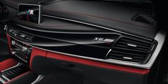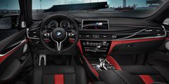 Bên trong cabin, không gian nội thất được phối theo hai tông màu đen Merino - đỏ Mugello tương phản. Vô lăng M Performance được bọc da Alcantara với viền màu xanh dương đặc trưng của những dòng xe hiệu năng cao, logo X5 M Edition Black Fire và X6 M Edition Black Fire "đính kèm" trên bảng táp-lô.