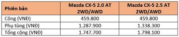 Mốc 10.000 – 15.000 km là cột mốc khá quan trọng trong bảo dưỡng ô tô nói chung, cũng như Mazda CX-5 nói riêng. Mốc bảo dưỡng này nằm trong phạm vi cấp bảo dưỡng trung bình. Vì vậy, chi phí dành cho cột mốc này cũng khá vừa phải, không quá tốn kém chi phí của chủ xe. Theo bảng giá bảo dưỡng định kỳ của Mazda Việt Nam, chi phí bảo dưỡng cho Mazda CX-5 năm 2019 như sau: