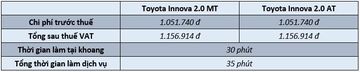 Chi phí bảo dưỡng Toyota Innova tại 10.000 km