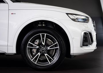 Audi Q5 bản cơ sở sử dụng vành hợp kim nhôm 18-inch 5 chấu hình ngôi sao với cỡ lốp 235/60 R18, còn Q5 S line được trang bị vành hợp kim nhôm 19 inch 5 chấu chữ V, màu xám ánh kim Graphite với cỡ lốp 235/55 R19.