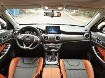 Bên trong, nội thất trang bị ghế da 2 tông màu, màn hình giải trí 9 inch trung tâm, âm thanh 6 loa, cửa sổ trời toàn cảnh, cửa kính chỉnh điện, phanh đỗ điện tử, cửa gió điều hòa cho hàng ghế sau, chìa khóa thông minh...