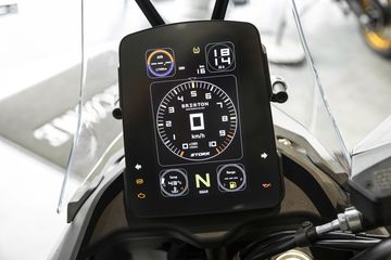 Về khung gầm, Crossfire 500 STORR cho thấy tham vọng chinh phục đa dạng địa hình với hệ thống treo trước hành trình lên tới 180mm – con số ấn tượng trong phân khúc. Hệ thống treo này không chỉ hấp thụ tốt các dao động trên đường xấu mà còn mang lại sự êm ái, ổn định khi chạy đường trường. Đặc biệt, khả năng điều chỉnh preload, compression và rebound cho phép người lái tinh chỉnh theo phong cách cá nhân, từ êm ái thư thái đến chắc chắn, thể thao hơn khi cần.