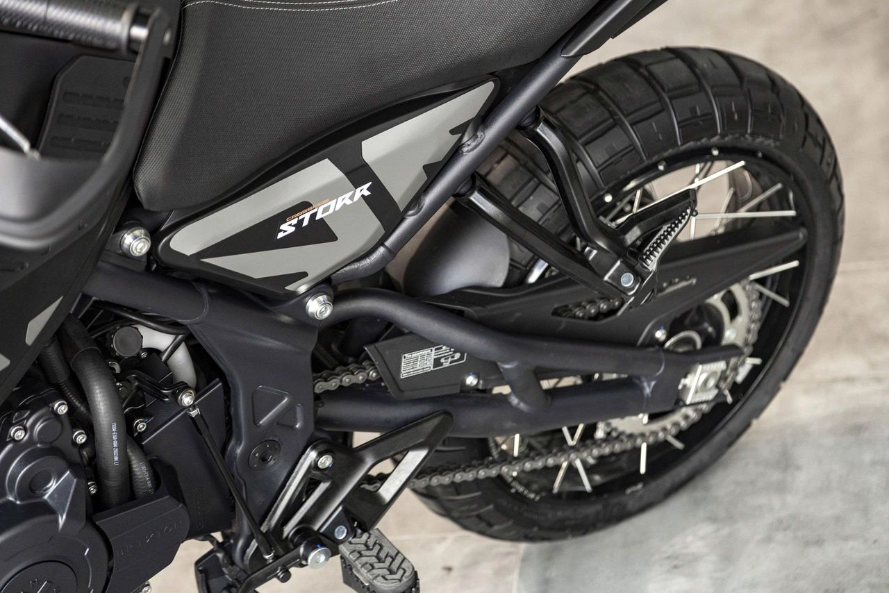 Bộ mâm nan hoa không săm (bánh căm vỏ không ruột) là lựa chọn đúng chất adventure, vừa đảm bảo độ bền khi đi địa hình, vừa thuận tiện trong quá trình sử dụng thực tế. Kết hợp cùng lốp Pirelli Rally Scorpion – dòng lốp được đánh giá cao về khả năng bám đường – Crossfire 500 STORR tự tin vận hành trên nhiều điều kiện mặt đường khác nhau, từ nhựa đường khô ráo, ướt mưa cho tới đường đất, sỏi nhẹ. Tất cả tạo nên một tổng thể hài hòa giữa phong cách, hiệu năng và tính thực dụng.