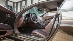 Nội thất của DB11 V8 Kopi Bronze đắt giá bởi các chi tiết thủ công được thực hiện tỉ mẩn. Lớp da bọc tông màu Mocha ấm áp hài hòa với màu sơn xe phối cùng vật liệu gỗ cao cấp đậm nhạt tạo nên sự trầm tĩnh, đẳng cấp và lôi cuốn đúng đặc trưng văn hóa hoàng gia Anh quốc. Những đường chỉ thêu dập nổi sắc sảo và cầu kỳ càng tăng thêm giá trị cho mẫu xe thượng lưu này.