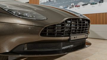 Lưới tản nhiệt thanh ngang kích thước lớn là một trong những điểm gợi cảm của trong ngôn ngữ thiết kế của Aston Martin. DB11 V8, mẫu xe biểu tượng của thương hiệu thừa hưởng trọn vẹn mãnh lực về thiết kế này với lưới tản nhiệt được hình thành từ 5 thanh ngang và 10 thanh dọc tạo nên cái nhìn khoẻ khoắn và cứng cỏi.