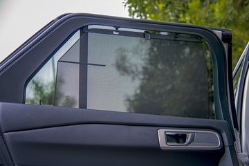Kính hàng 2, 3 và kính hậu có khả năng chống nhìn xuyên thấu, mang lại sự riêng tư cho hành khách. Đặc biệt, hàng ghế 2 còn được tích hợp sẵn rèm chắn nắng trên cánh cửa, và bệ tì tay ở giữa có giá để cốc.