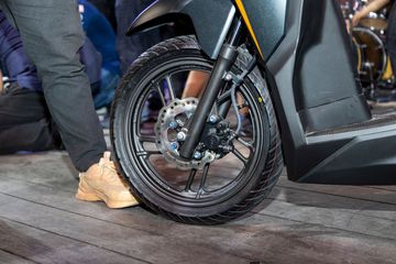 Vario 125 sở hữu phanh đĩa phía trước lượn sóng, bộ vành với thiết kế thể thao, đi cùng lốp xe không săm kích thước rộng giúp xe ổn định và bám đường tốt.