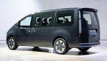 Thiết kế mang tính hiện đại với mặt ca-lăng cỡ lớn, cụm đèn pha gồm có 8 bóng hình vuông như viên đá được đặt thấp hay dải đèn hậu LED trải dài ở đuôi xe. So về kích thước thì Hyundai Staria 2021 có sự khác biệt khá lớn với Hyundai Starex 9 (H1) đang ở thị trường Việt Nam ở chiều 5125 x 1920 x 1925 (mm) và chiều dài cơ sở 3200 (mm).