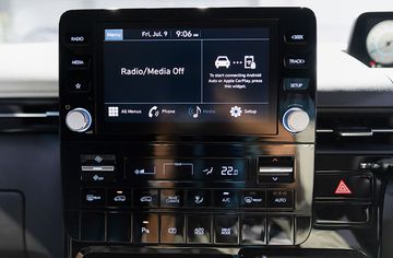 Chưa hết, xe còn có hệ thống thông tin giải trí với màn hình cảm ứng 8 inch, hỗ trợ tính năng thông minh sạc không dây và cần số nút bấm như SantaFe 2021.