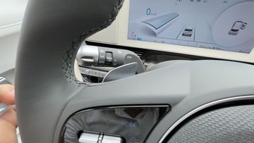IONIQ 5 sử dụng cần số điện tử tích hợp trên cụm vô lăng nhờ đó không gian giữa ghế lái và hành khách bên ghế phụ được liên thông. Điều này chưa từng có trên các mẫu xe sử dụng động cơ đốt trong, tạo nên sự liền mạch về thiết kế và không gian, đem đến sự rộng rãi, thoải mái tối đa.