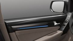 Bên cạnh đó là đèn trang trí nội thất với dải ánh sáng xanh đầy ấn tượng. Đèn trang trí bậc lên xuống với logo mu-X đã tạo nên điểm nhấn khác biệt với các dòng xe cùng phân khúc. Chưa hết, những chi tiết được mạ crôm như khay đựng cốc và cần số, đi cùng với ốp sang trọng cho chìa khóa thông minh.