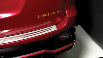Phía sau xe, tấm ốp bạc ôm lấy phần cản sau, đặc biệt là dòng chữ LIMITED màu vàng đồng được dập nổi trên nền đỏ rực càng tạo nên điểm nhấn ấn tượng cho chiếc Isuzu mu-X limited 2019.