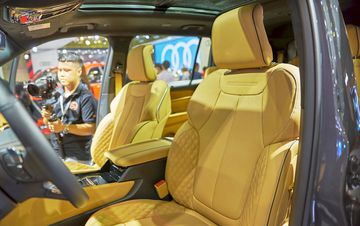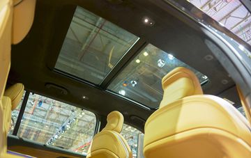 Ghế ngồi được bọc da Nappa tinh tế với đường chỉ khâu kim cương tương phản. Ngoài ra, thiết kế cửa sổ trời toàn cảnh dài từ trước ra sau làm tăng thêm sự thoáng đãng của cabin.