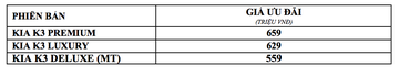 Tại Việt Nam, thương hiệu KIA do THACO AUTO phân phối luôn mang đến cho khách hàng nhiều sự lựa chọn đa dạng. Với mong muốn đưa sản phẩm đến Khách hàng nhanh nhất, Kia K3 được giới thiệu trước với 03 phiên bản đầu tiên trang bị động cơ xăng Gamma 1.6L lần lượt là K3 Premium, K3 Luxury và K3 Deluxe (MT), trong đó phiên bản K3 Premium là phiên bản hoàn toàn mới so với mẫu xe tiền nhiệm.