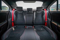 Bên trong nội thất là cặp màn hình kích thước 10.25 inch hiển thị các thông tin hỗ trợ lái, hệ thống đa phương tiện thông minh MBUX với trí tuệ nhân tạo có thể giao tiếp thông qua câu lệnh ‘’Hey Mercedes’’, vô-lăng đáy phẳng có tích hợp lẫy chuyển số, hệ thống điều hòa tự động 2 vùng độc lập, ghế ngồi thể thao bọc da ARTICO tạo ấn tượng với các đường chỉ khâu màu đỏ tương phản.