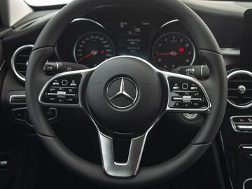 C 180 AMG được trang bị tay lái với thiết kế mới, tích hợp 2 nút điều khiển cảm ứng trên tay lái (Touch Control Buttons), giúp người lái dễ dàng điều khiển các tính năng của xe mà không bị sao nhãng.