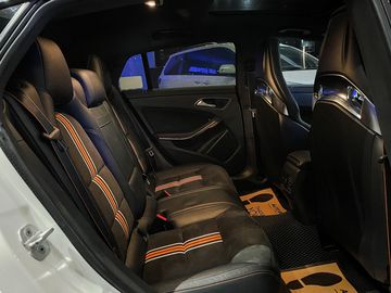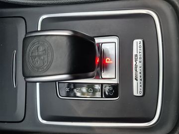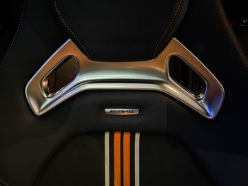 Cabin tràn ngập da cao cấp và các chi tiết bằng kim loại: bộ ghế thể thao bọc da và vi sợi Dinamica, bảng táp-lô bọc Artico, chỉ khâu màu cam đối lập và biển tên “AMG OrangeArt Edition”. Bên cạnh đó, dàn loa Harman Kardon hứa hẹn sẽ thỏa mãn những đôi tai khắt khe của tín đồ âm thanh.