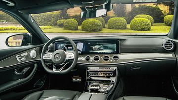 Thiết kế vô lăng thế hệ mới: Tương tự E 350 AMG, E 300 AMG cũng sở hữu thiết kế vô lăng thế hệ mới dạng D-cut với phần ốp làm từ hợp kim nhôm. Vô lăng tích hợp tích hợp 2 nút điều khiển cảm ứng trên tay lái (Touch Control Buttons), giúp người lái dễ dàng điều khiển các tính năng của xe mà không bị sao nhãng.
