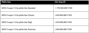 MINI Châu Á và THACO đã chính thức giới thiệu mẫu xe MINI Cooper 3 Cửa với 4 phiên bản đi cùng giá bán khởi điểm từ 1,8 tỷ đồng.
