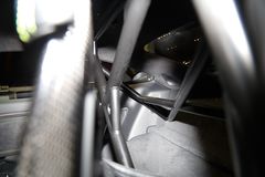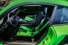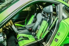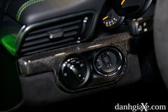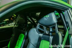 Phong cách xe đua cũng được thể hiện rõ trong khoang nội thất với ghế xe đua được được chế tạo từ sợi carbon và bọc da Alcantara tương phản 2 màu xanh - đen. Đi cùng đó là dây đai an toàn 6 điểm bên cạnh dây an toàn dạng thông thường có màu xanh lá, tay nắm cửa cũng được thay thế bằng dây kéo giúp hỗ trợ an toàn ở các tình huống lái xe ở chế độ năng động cấp độ cao.