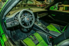 911 GT3 RS sử dụng vô lăng thể thao bọc da lộn Alcantara và bộ lẫy sang số trực tiếp và loại bỏ các nút điều khiển để tài xế tập trung tối đa cho việc lái xe. Màn hình giải trí trung tâm có kích thước 4,6 inch đi cùng hệ thống âm thanh 8 loa, phần mềm giám sát đường đua của Porsche.