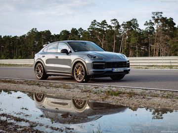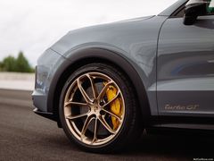 Trục trước cũng được tinh chỉnh toàn diện để tăng độ chính xác khi điều khiển. So với Cayenne Turbo Coupé, hai bánh trước của phiên bản Turbo GT rộng hơn một inch. Góc camber âm của bánh xe so với mặt đường được cải thiện 0,45 độ khiến lốp hiệu năng cao Pirelli P Zero Corsa 22 inch mới, được phát triển riêng cho Turbo GT có diện tích bề mặt tiếp xúc lớn hơn. Hệ thống Phanh Gốm Tổng hợp của Porsche (PCCB) cũng được trang bị tiêu chuẩn trên Cayenne Turbo GT.