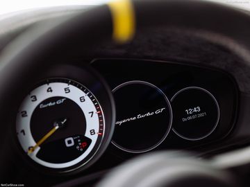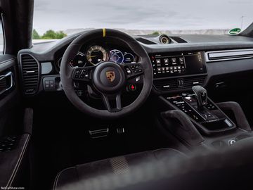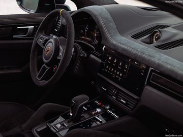 Tính thể thao của Cayenne Turbo GT được nhấn mạnh bởi những trang bị cao cấp và chi tiết bọc da Alcantara bên trong nội thất. Ghế thể thao chỉnh điện 8 hướng ở phía trước và hàng ghế thể thao với 2 chỗ ngồi ở phía sau được trang bị tiêu chuẩn với các chi tiết bằng da Alcantara có lỗ thoát khí và đường may tương phản màu đồng Neodyme hoặc Arctic Grey, đi cùng với dòng chữ “turbo GT” ở tựa đầu.