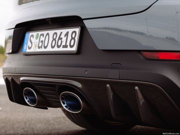Hệ thống ống xả thể thao được trang bị tiêu chuẩn với ống xả đặt ở trung tâm là điểm nhấn trên Cayenne Turbo GT. Hệ thống xả, bao gồm bộ tiêu âm phía sau được làm bằng vật liệu titanium nhẹ và chịu nhiệt tốt. Ngoài ra, việc loại bỏ bộ tiêu âm trung tâm cũng góp phần giúp giảm trọng lượng thân xe.