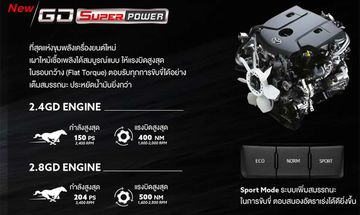 Về động cơ, Toyota chỉ trang bị hai loại sử dụng nhiên liệu diesel có dung tích 2.4 và 2.8 lít khá quen thuộc. Loại 2.4 lít có sức mạnh 150 mã lực tại 3.400 vòng/phút và momen xoắn cực đại 400Nm từ 1.600 đến 2.000 vòng/phút. Trong khi 2.8 lít có sức mạnh lên đến 204 mã lực tại 3.400 vòng/phút (mạnh hơn 27 mã lực so với đời trước) và momen xoắn cực đại 500Nm từ 1.600 đến 2.800 vòng/phút.