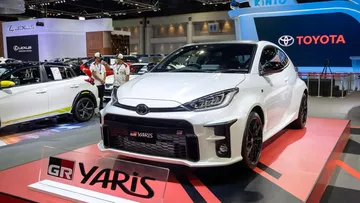 Không chỉ sở hữu thiết kế đẹp mắt, mẫu hatchback 3 cửa Toyota GR Yaris 2020 còn gây ấn tượng với sức mạnh lên tới 261 mã lực, đi kèm là hệ dẫn động bốn bánh toàn thời gian. Xe hiện được trưng bày tại triển lãm Motor Expo 2020 (Thái Lan).